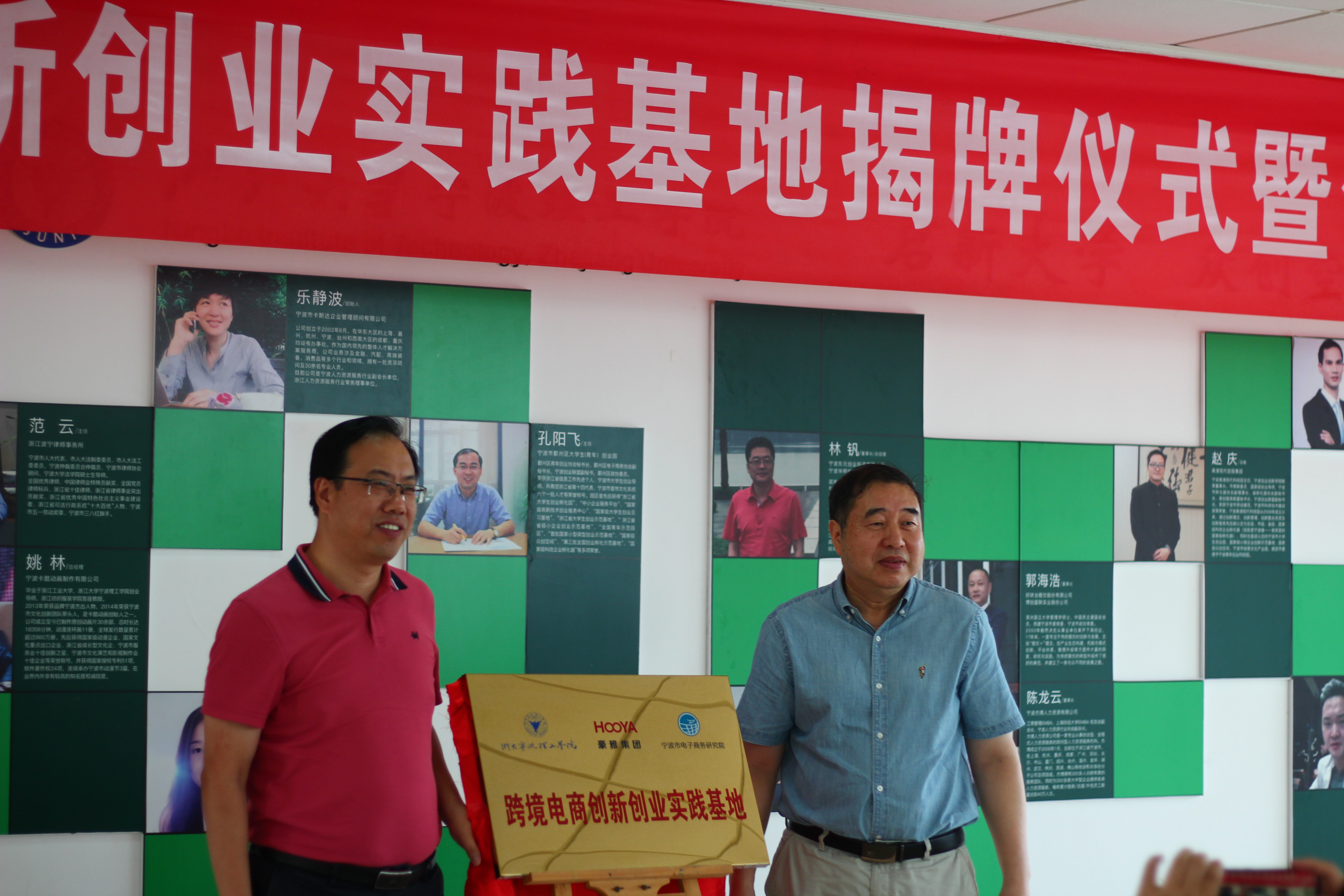会上,公司教务处处长潘再平、宁波豪雅集团常务副总裁蔡井泉共同为跨境电商创新创业实践基地揭牌,公司副董事长鲁东明教授为创业导师陈林、王云刚颁发了聘书。