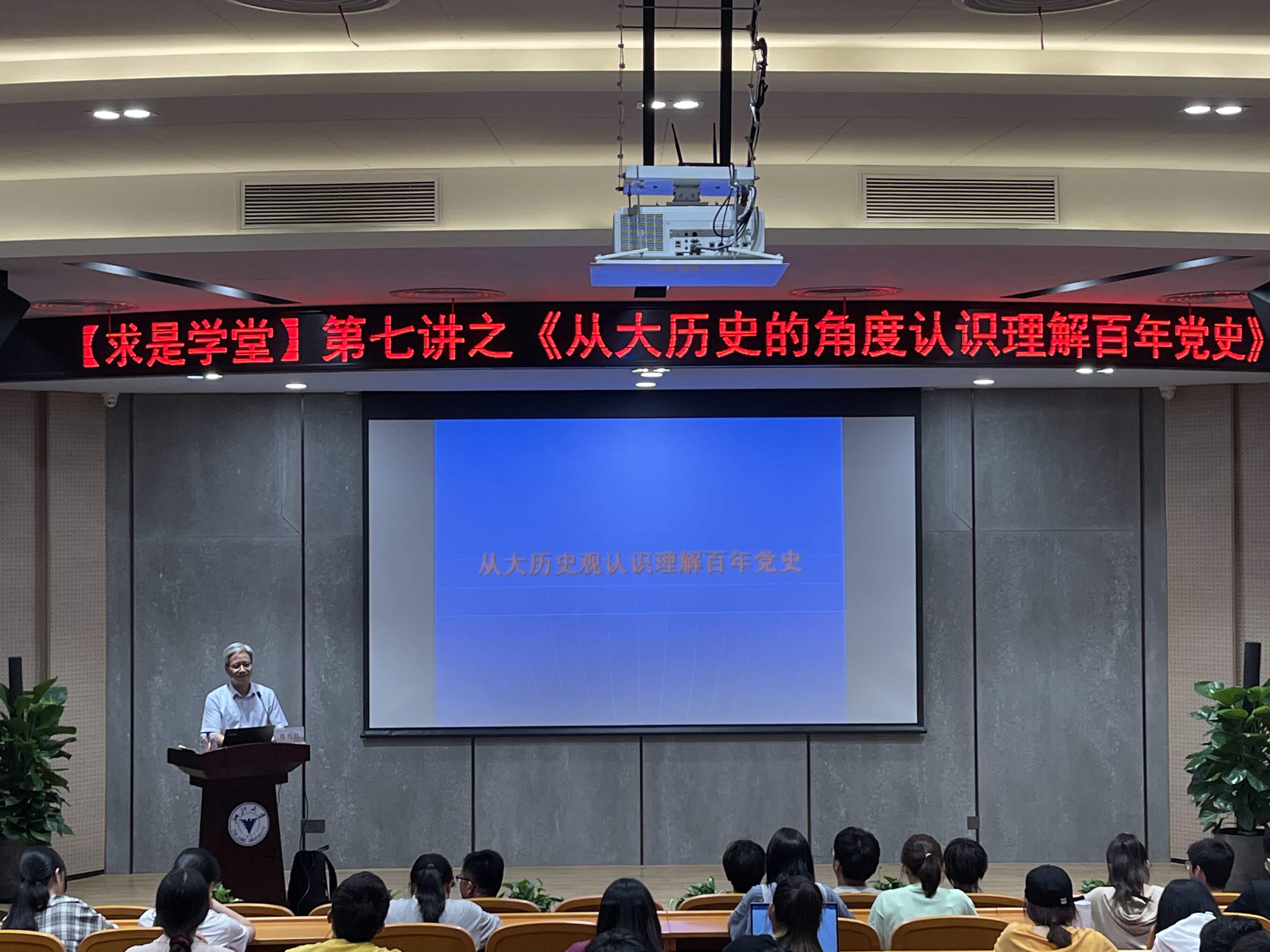 5月25日晚上,【求是学堂】第七讲之《从大历史的角度认识理解百年党史》讲座在启新大讲堂举行,本次讲座邀请了宁波市王阳明文化研究促进会会长、公司兼职教授陈利权博士、研究员为主讲人,商公司、传法公司、机能公司、信息公司等相关单位师生300余人聆听了讲座。讲座由yl23411永利官网副经理廖海鹏主持。