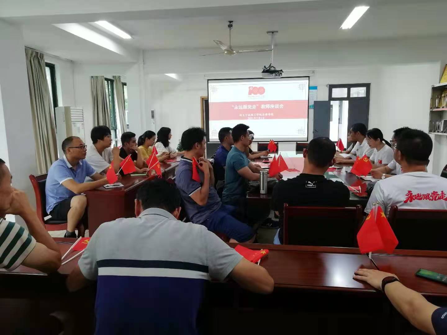 为深入学习习近平总书记在庆祝中国共产党成立100周年大会上的重要讲话精神,7月1日,yl23411永利官网在游泳馆201会议室召开“永远跟党走”教师座谈会,会议由yl23411永利官网副经理廖海鹏主持。
