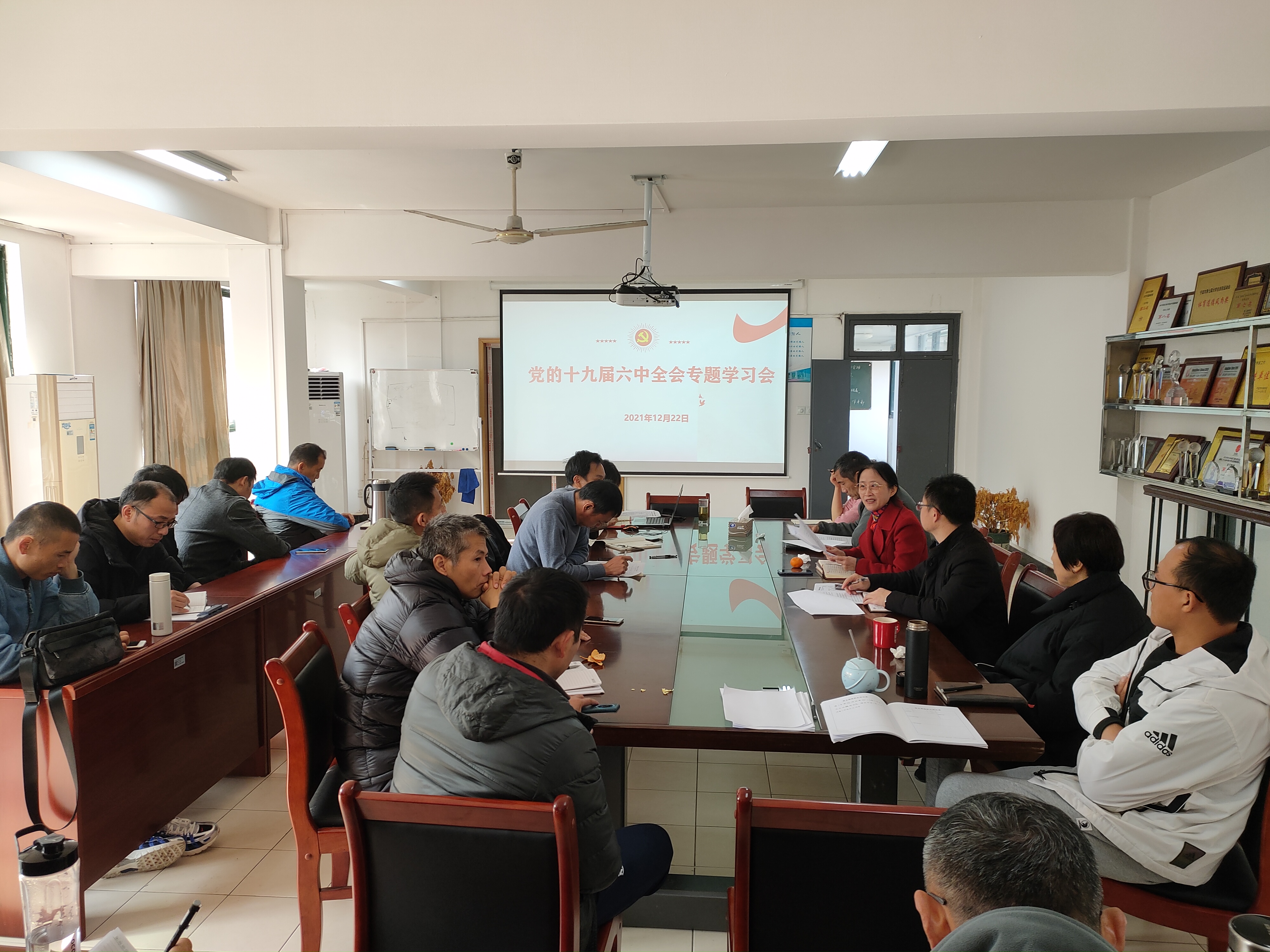 随后进行了会议精神专题学习会,戴革萍经理作了《全面学习解读会议》专题报告,戴经理从总结党的百年奋斗的重大成就和历史经验的“三个需要”、 百年历程创造的“四方面伟大成就” 、百年奋斗带来的“四方面改变”、回答“两个重要问题”、 两个“确立”、五大“历史意义”、十个“坚持”、牢记“一个根本问题”、四个“必须”、 一个“号召”等方面全面解读了会议精神内涵。