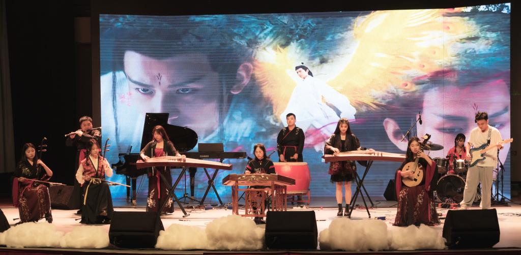 首先,《云宫讯音》作为整场音乐会的开场,凭借着动感十足的乐声和令人眼前一亮的服饰收获了热烈掌声。紧接着,《一生所爱》、《画心》、《美丽的神话》、《此生不换》等经典仙侠题材的影视剧主题曲的演奏,仿佛带着观众走进了武侠的世界。本次音乐会脱离传统的主持人报幕串场的方式,大胆采用旁白叙述以及情景演出的新模式,讲述了一个男孩受武侠世界的影响而变得更有担当的故事,情节生动引人深思,受到了观众们的好评。串场的情景演出中加入了《芦苇荡》、《王进打高俅》和《太阳照常升起》这三首曲子,承担着故事篇章间承上启下的作用。每一个节目结束后,观众们都给予了热烈的掌声,最后,整场音乐会在节奏活泼的《数码宝贝》中落下了帷幕。