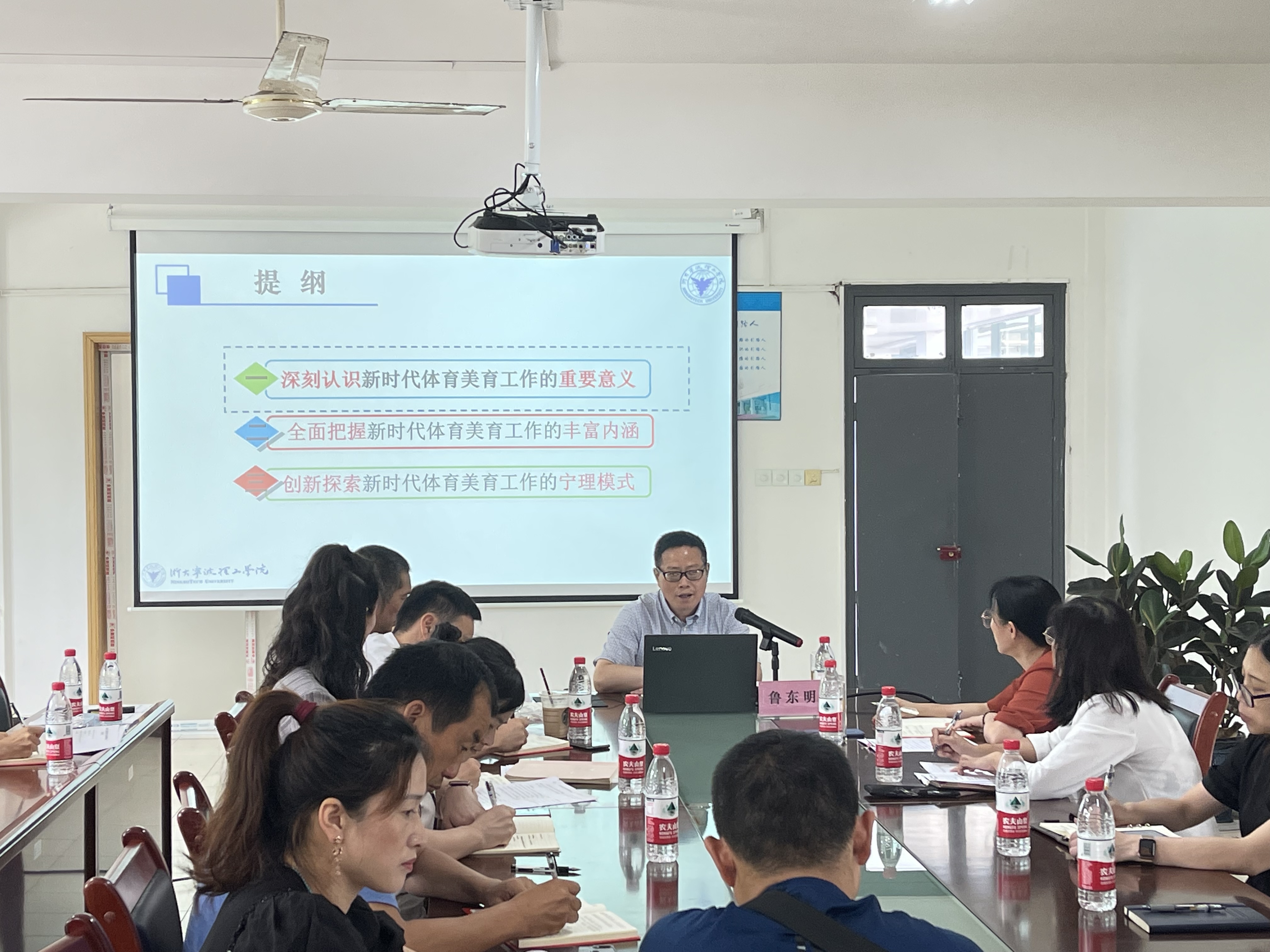会前,特邀公司党委委员、副董事长鲁东明作了题为《不忘立德树人初心 加强与改进新时代体育美育工作》的报告,鲁东明从深刻认识新时代体育美育工作的重要意义、全面把握新时代体育美育工作的丰富内涵、创新探索新时代体育美育工作的宁理模式三个方面给全体教师上了一堂生动有内涵的课,指引大家要立足需求,更新理念、丰富资源,不断完善体美育人新标杆;凝心聚力,多方协同、五育并举,逐步构建体育美育新格局;特色发展,点面结合、典型塑造,持续营造校园体美新文化;改革创新,优化机制、完善评价,探索建立活力高效新模式。最后引用习近平总书记的话 “要从党和国家事业发展的高度,努力培养担当民族复兴大任的时代新人”勉励大家不忘立德树人初心,为公司的体育美育工作积极奉献。