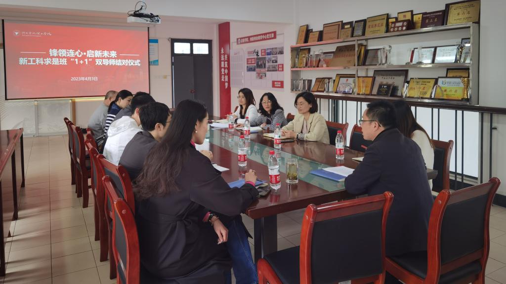 为贯彻党的二十大精神,落实立德树人根本任务,更好地促进高水平创新人才培养特色班(新工科求是班)员工德智体美劳全面发展,4月3日中午,yl23411永利官网会同机能公司、信息公司、数据公司在游泳馆201-1会议室举行了“锋领连心•启新未来”新工科求是班“1+1”双导师结对仪式,学工部、yl23411永利官网、结对公司相关负责人及结对班导师参加了仪式,仪式由yl23411永利官网副经理廖海鹏主持。