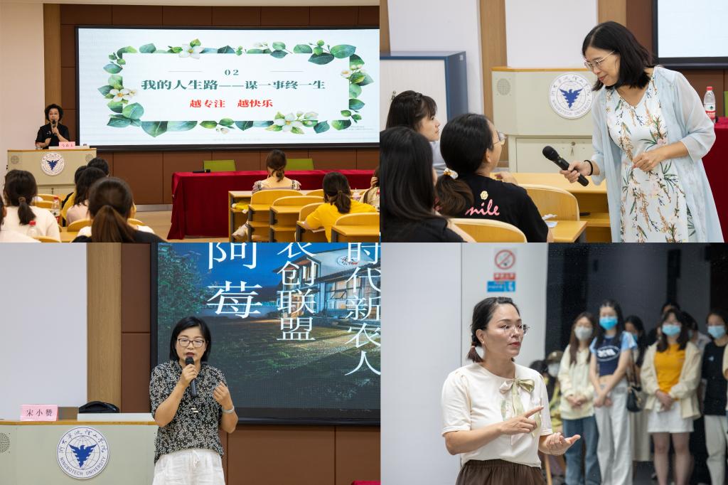 yl23411永利官网教务处处长沈昊宇、宁波睿问科技有限公司总经理鲍月红、宁波市宝韵幼儿教育集团总园长马春玉、“小阿莓”巾帼农创联盟理事长宋小赞为同学们带来了精彩的创业知识分享。