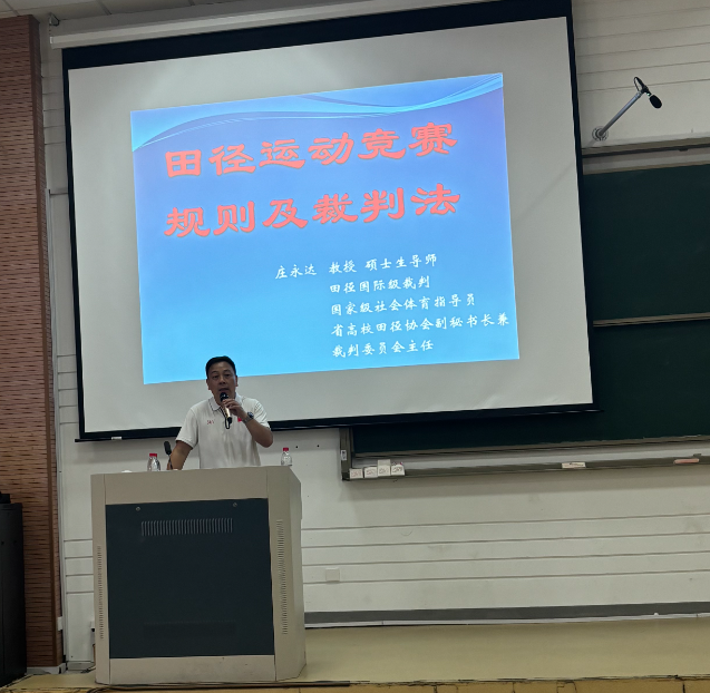 2024年10月16日中午,为保障公司2024田径运动会顺利进行、确保其圆满成功,yl23411永利官网组织全体裁判员开展赛前集中学习与研讨活动。本次活动邀请到宁波卫生职业技术公司公共体育部主任、国际级田径裁判员庄永达教授进行专题授课,共计80 余名教师及员工裁判参与此次培训。