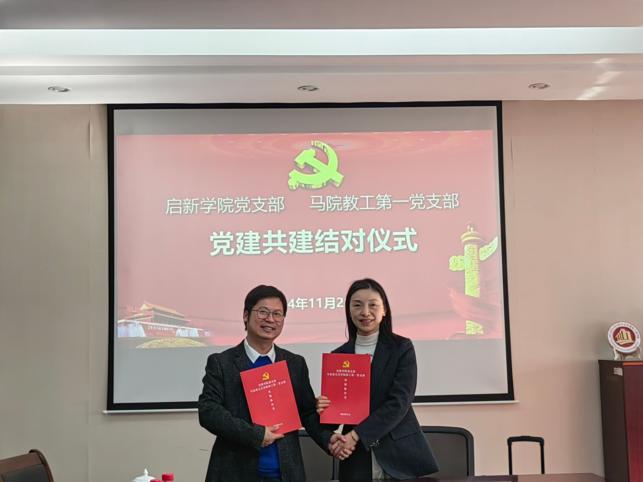 为加强党支部的联系与交流,共同提升党建工作质量,推动双方省级“双带头人”教师党支部“强国行”专项行动整合资源、优势互补、协同发展,有力实施,双方党支部签署了党建共建协议。