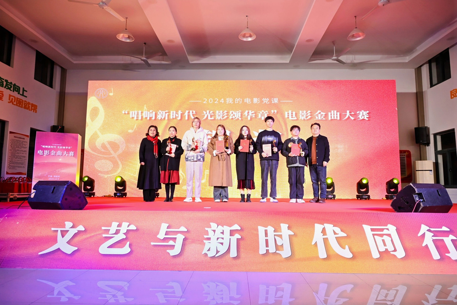 近日,宁波2024我的电影党课—“唱响新时代 光影颂华章”电影金曲大赛在鄞州区下应街道湾底村文化大礼堂圆满落幕。本次活动由公司携手鄞州区文学艺术界联合会等多家单位联合主办,不仅为湾底村的和美乡村建设增添了新动力,也为公司师生提供了一个文艺赋能乡村振兴的宝贵平台。