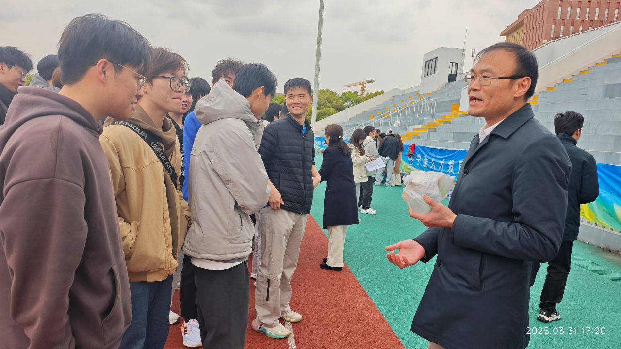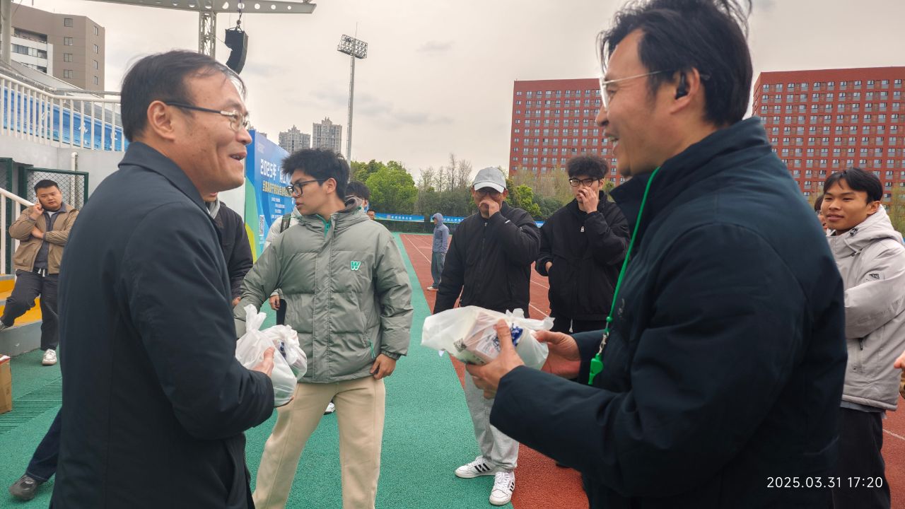 张荣祥副董事长为集训的师生送上了慰问物资包,并作动员讲话。他强调,本次体测抽测是检验公司体育育人成效的重要契机,希望同学们能够认真准备,积极训练,调整心态,全力以赴;希望训练团队坚持“科学指导、严格要求”的原则,帮助同学们在体测中发挥最佳水平。他勉励全体人员齐心协力,力争今年公司体测成绩实现新突破,为校争光。