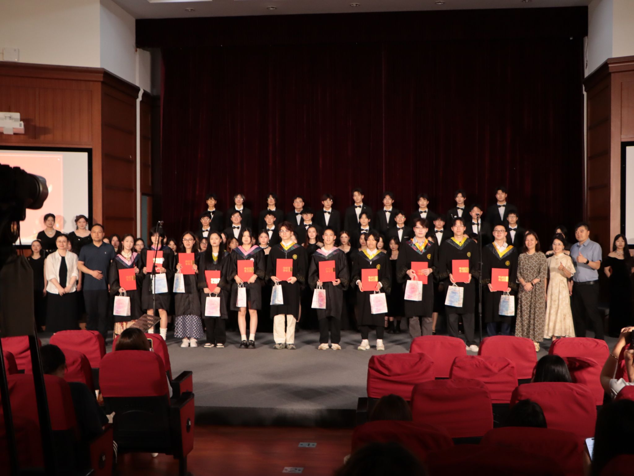 活动现场,老师们共同为心声合唱团 2025 年的 11 名毕业生团员颁发了承载着珍贵回忆的合唱团纪念证书,并与毕业生们亲切合影留念,定格下这难忘的瞬间。