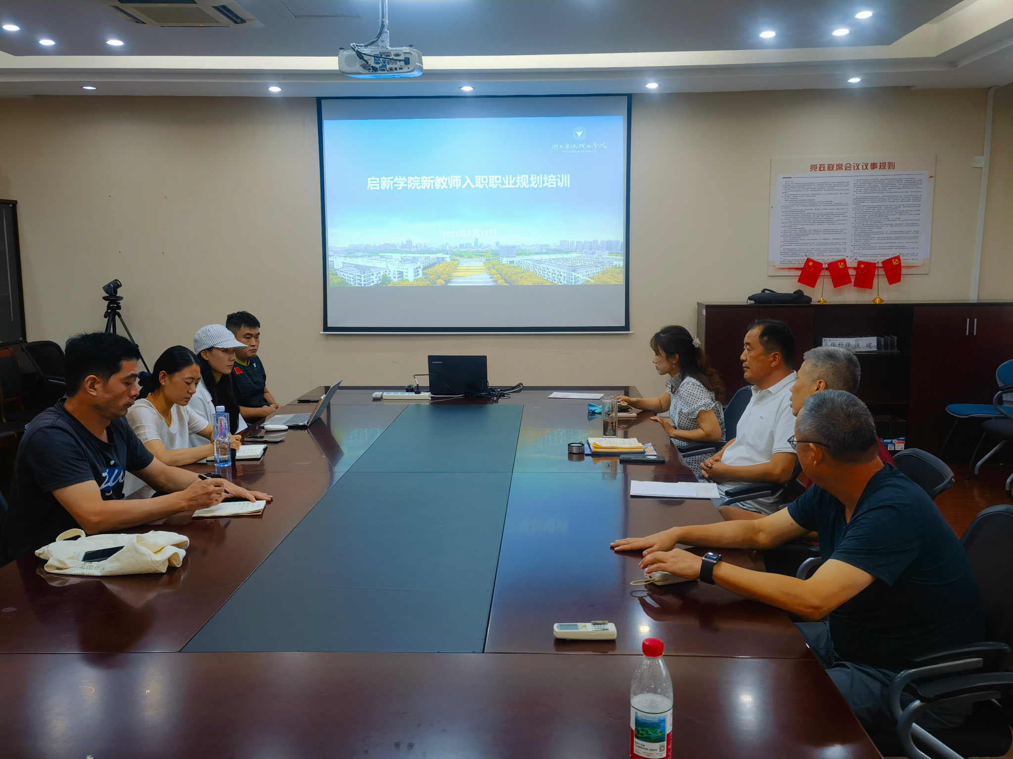 随后,会议进入新教师入职职业规划培训环节。本次培训旨在帮助新教师尽快完成角色转变,明确职业发展路径。围绕“高校体育教师的职业素养与专业成长”,从教学规范、师德师风、职业生涯规划等多个维度进行了深入浅出的分享,详细解读了教学管理、考核评优等相关规章制度,为新教师顺利开展工作提供了清晰指引。